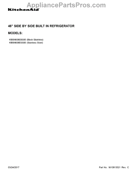 Parts for Kitchenaid KBSN608ESS00: 01 - Cover Sheet Parts
