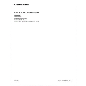 Parts for Kitchenaid KBWS19KCMS00: 01 - Cover Sheet Parts