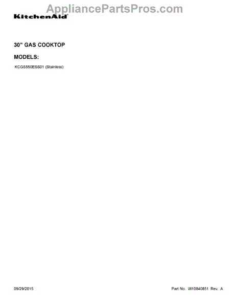Parts for Kitchenaid KCGS550ESS01: 01 - Cover Sheet Parts