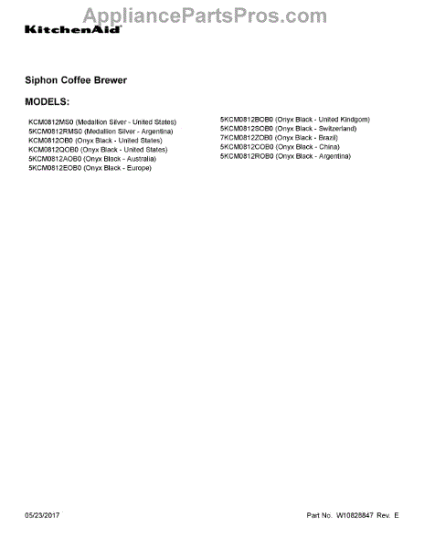 Parts for Kitchenaid KCM0812MS0: 01 - Cover Sheet Parts