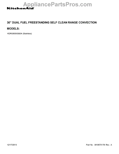 Parts for Kitchenaid KDRS505XSS04: 01 - Cover Sheet Parts