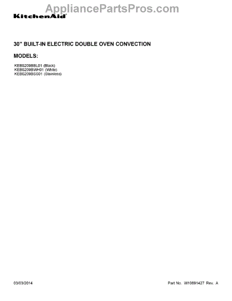 Parts for Kitchenaid KEBS209BSS01: 01 - Cover Sheet Parts