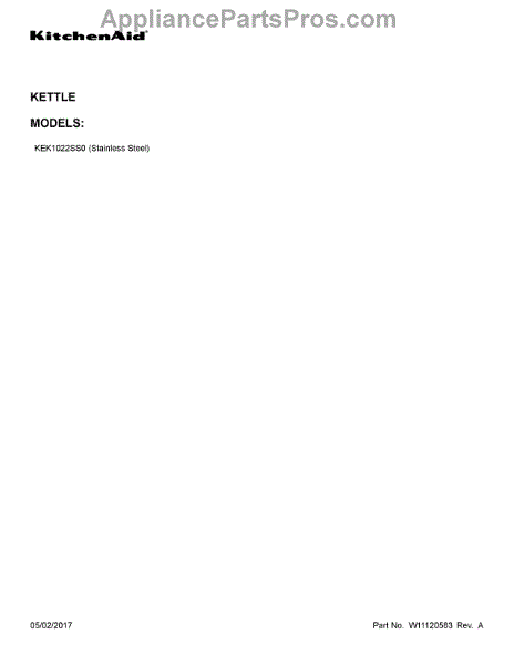 Parts for Kitchenaid KEK1022SS0: 01 - Cover Sheet Parts