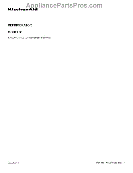 Parts for Kitchenaid KFIV29PCMS03: 01 - Cover Sheet Parts