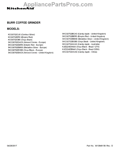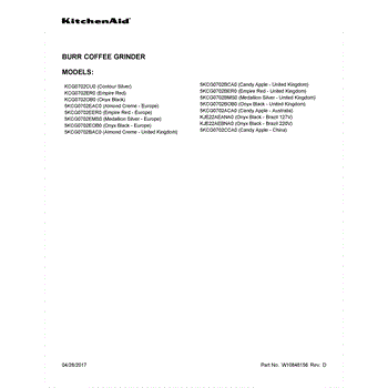 Parts for Kitchenaid KJE22AEANA0: 01 - Cover Sheet Parts