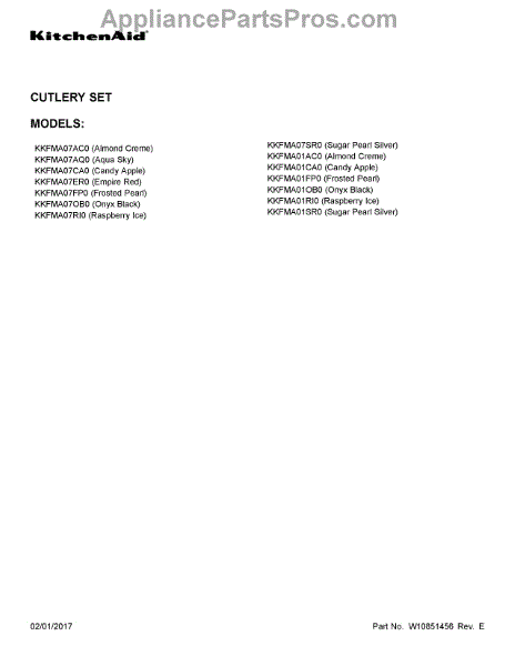 Parts for Kitchenaid KKFMA07RI0: 01 - Cover Sheet Parts