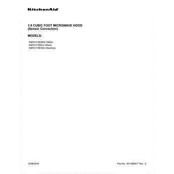 Parts for Kitchenaid KMHC319ESS2: 01 - Cover Sheet Parts