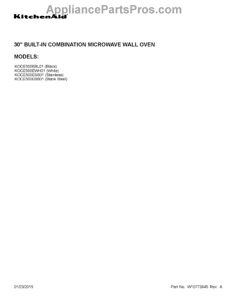 Parts for Kitchenaid KOCE500EBS01: 01 - Cover Sheet Parts