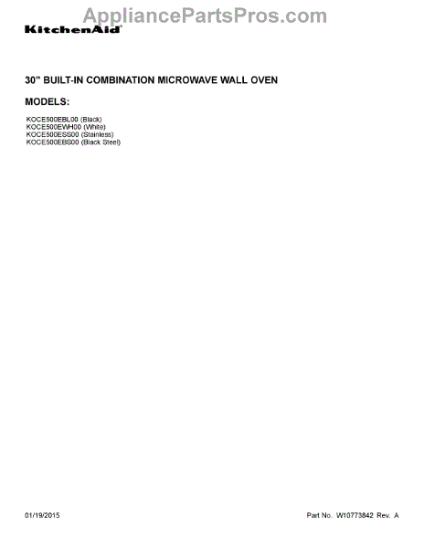 Parts for Kitchenaid KOCE500EWH00: 01 - Cover Sheet Parts