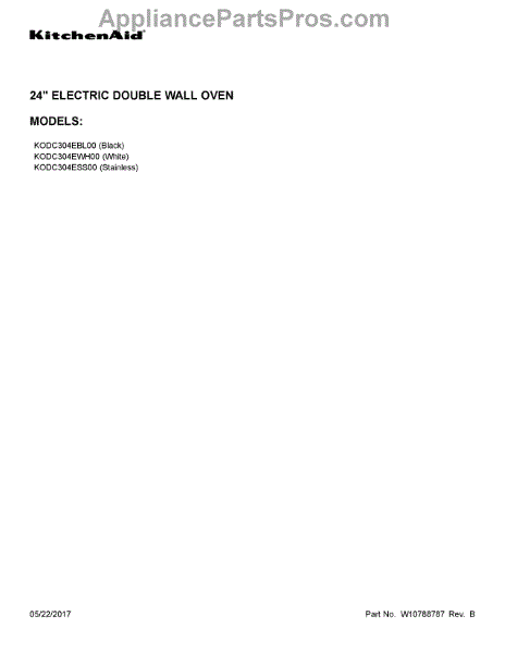 Parts for Kitchenaid KODC304EWH00: 01 - Cover Sheet Parts
