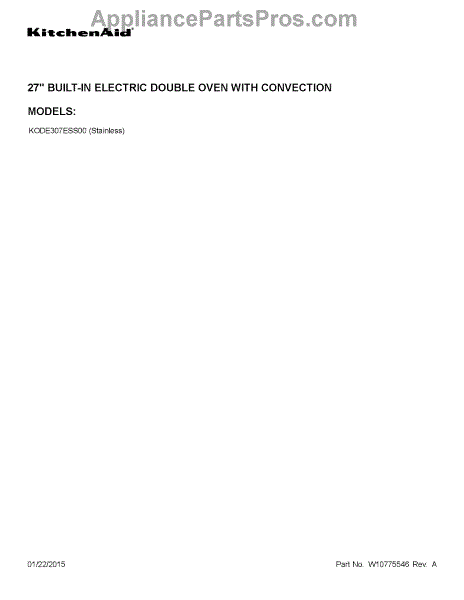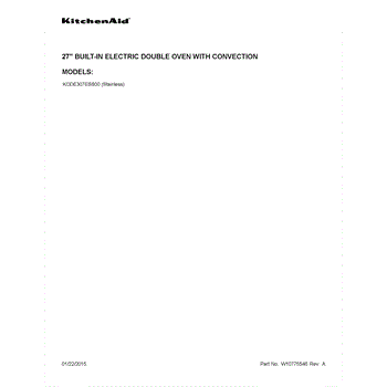 Parts for Kitchenaid KODE307ESS00: 01 - Cover Sheet Parts