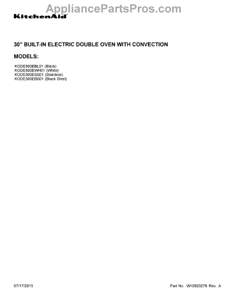 Parts for Kitchenaid KODE500EBS01: 01 - Cover Sheet Parts