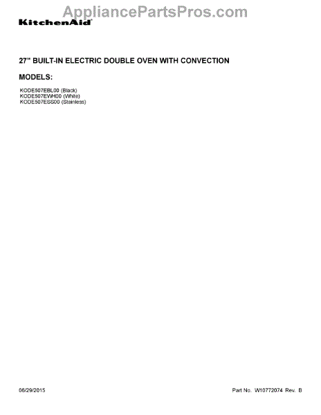 Parts for Kitchenaid KODE507EBL00: 01 - Cover Sheet Parts