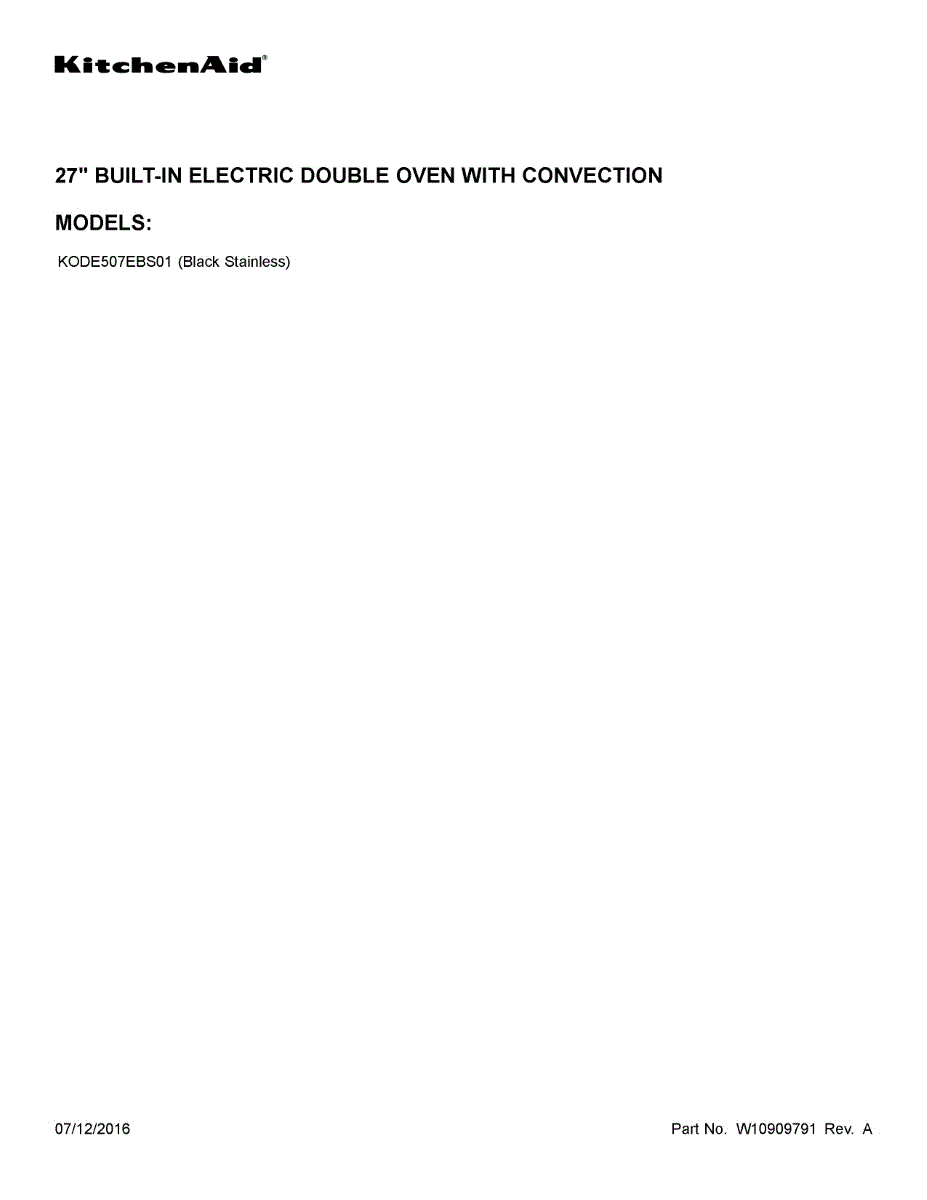Parts for Kitchenaid KODE507EBS01: 01 - Cover Sheet Parts