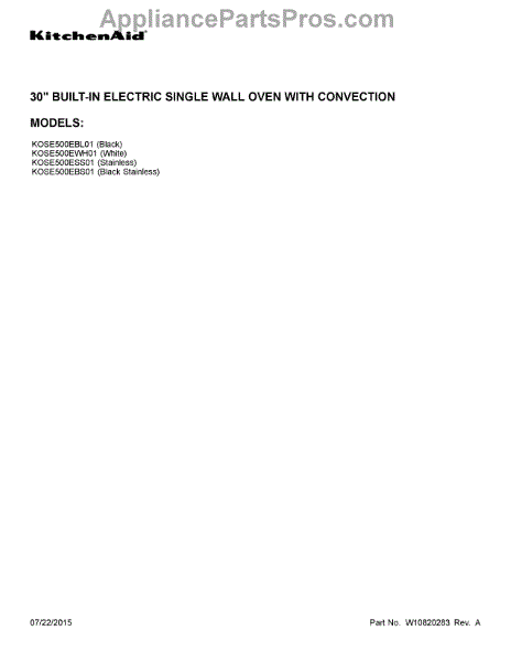Parts for Kitchenaid KOSE500ESS01: 01 - Cover Sheet Parts