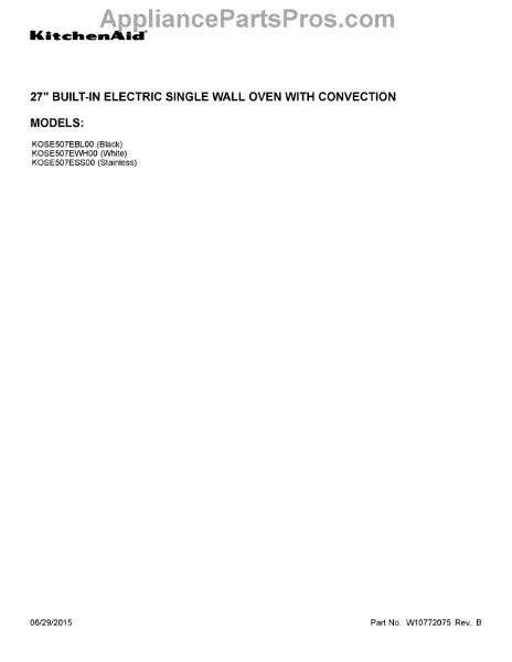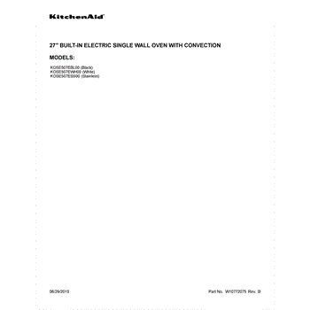 Parts for Kitchenaid KOSE507EBL00: 01 - Cover Sheet Parts