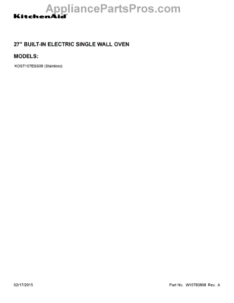Parts for Kitchenaid KOST107ESS00: 01 - Cover Sheet Parts