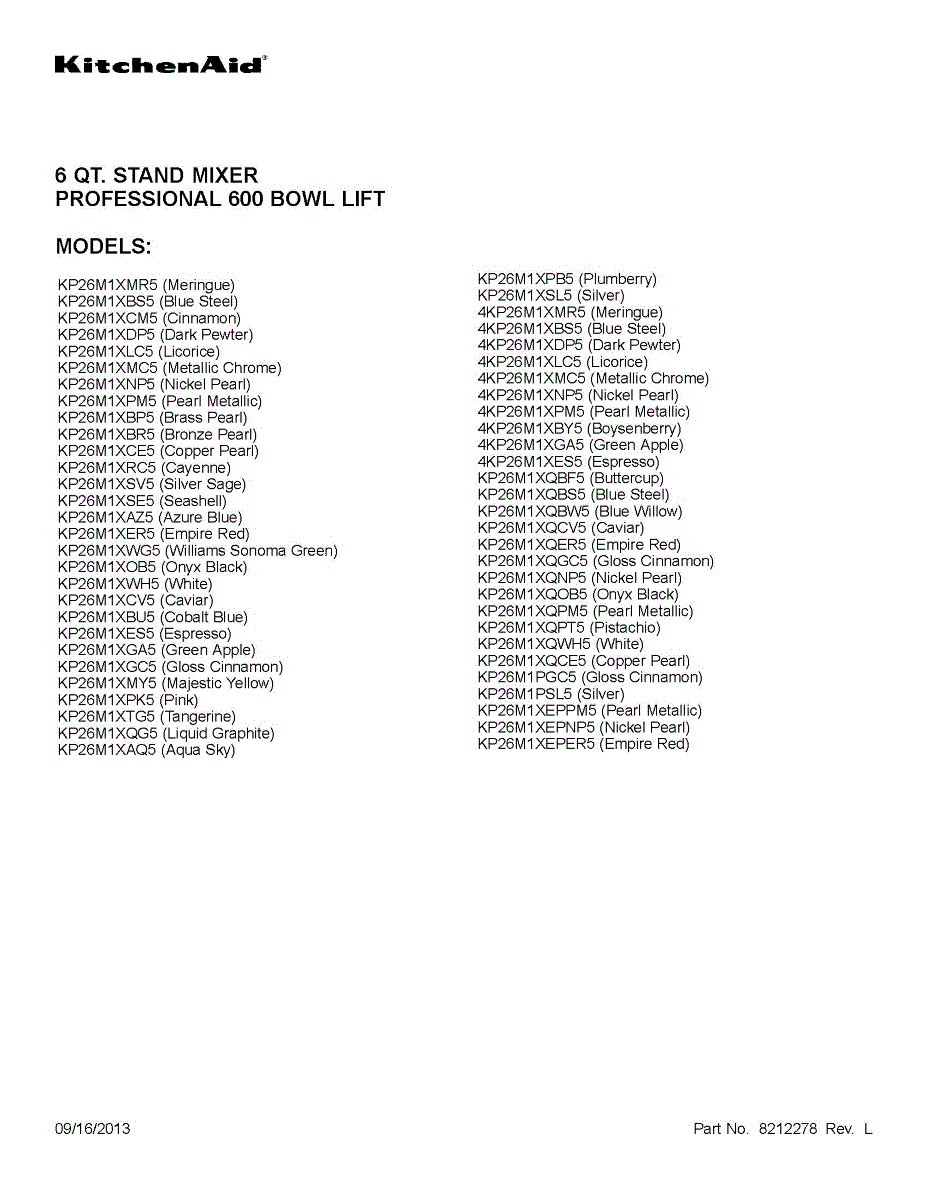 Parts for Kitchenaid KP26M1XEPER5: 01 - Cover Sheet Parts