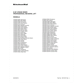 Parts for Kitchenaid KP26M1XSL5: 01 - Cover Sheet Parts