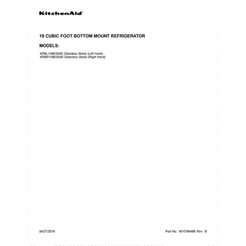 Parts for Kitchenaid KRBR109ESS00: 01 - Cover Sheet Parts