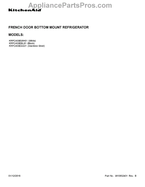 Parts for Kitchenaid KRFC400EBL01: 01 - Cover Sheet Parts