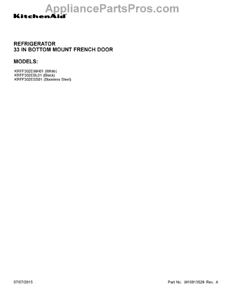 Parts for Kitchenaid KRFF302ESS01: 01 - Cover Sheet Parts