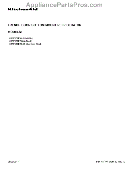 Parts for Kitchenaid KRFF507EWH00: 01 - Cover Sheet Parts