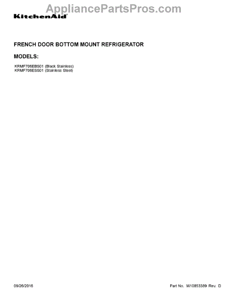 Parts for Kitchenaid KRMF706EBS01: 01 - Cover Sheet Parts