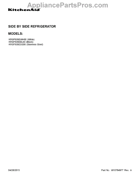 Parts for Kitchenaid KRSF505EBL00: 01 - Cover Sheet Parts