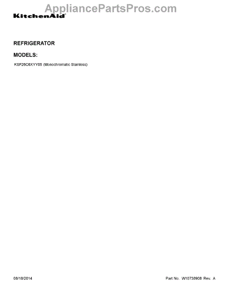 Parts for Kitchenaid KSF26C6XYY05: 01 - Cover Sheet Parts