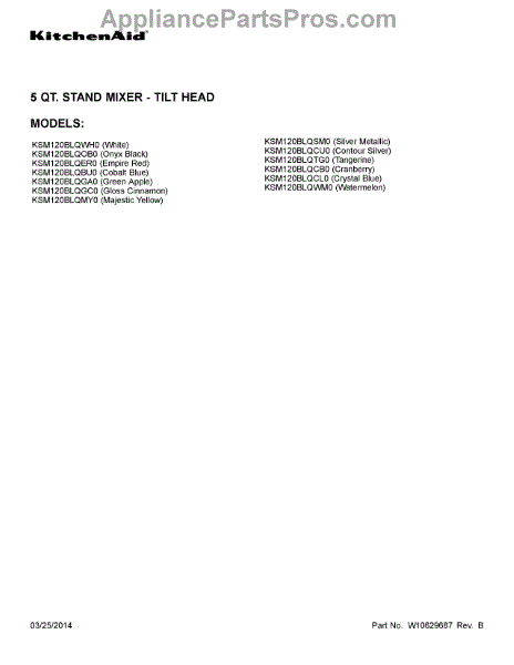 Parts for Kitchenaid KSM120BLQOB0: 01 - Cover Sheet Parts
