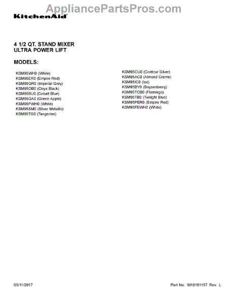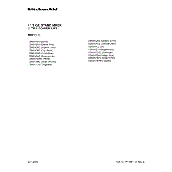 Parts for Kitchenaid KSM95PER0: 01 - Cover Sheet Parts