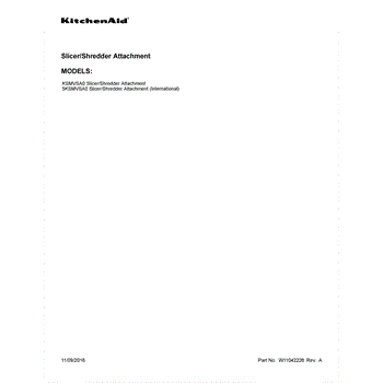 Parts for Kitchenaid KSMVSA0: 01 - Cover Sheet Parts