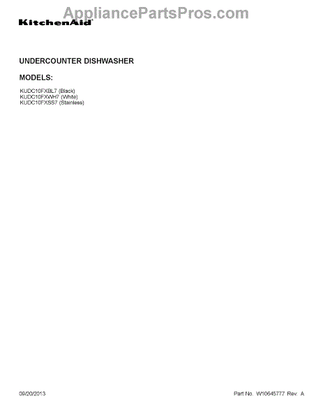 Parts for Kitchenaid KUDC10FXSS7: 01 - Cover Sheet Parts