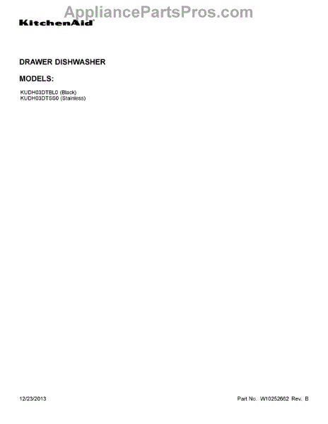 Parts for Kitchenaid KUDH03DTBL0: 01 - Cover Sheet Parts