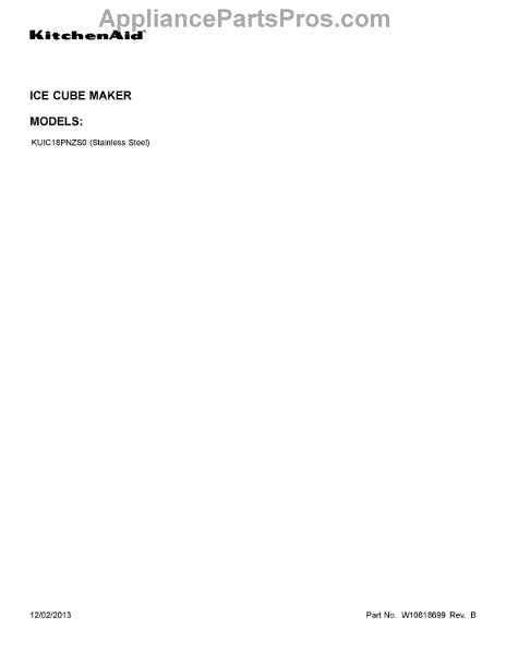 Parts for Kitchenaid KUIC18PNZS0: 01 - Cover Sheet Parts