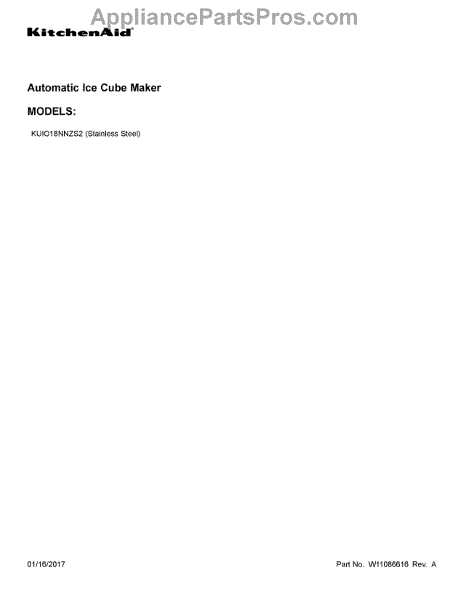 Parts for Kitchenaid KUIO18NNZS2: 01 - Cover Sheet Parts