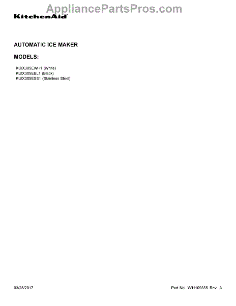 Parts for Kitchenaid KUIX305EBL1: 01 - Cover Sheet Parts