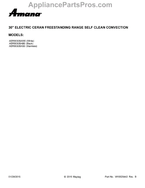 Parts for Maytag AER5630BAW0: 01 - Cover Sheet Parts