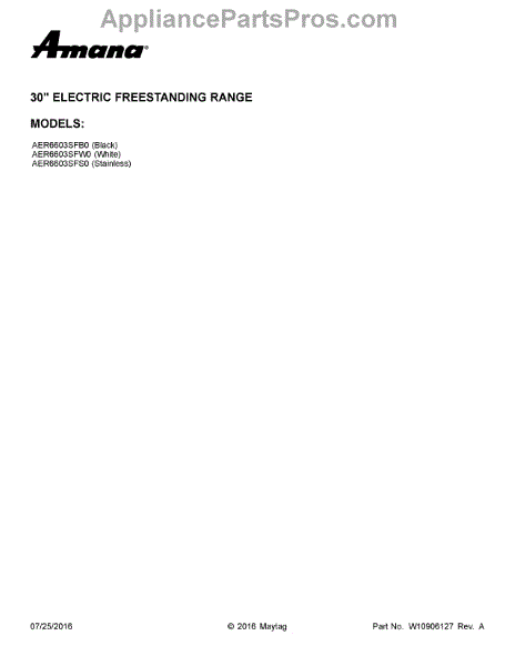 Parts for Maytag AER6603SFS0: 01 - Cover Sheet Parts