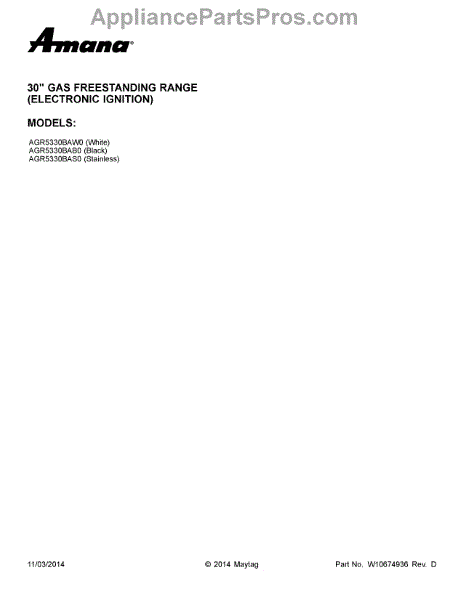 Parts for Maytag AGR5330BAB0: 01 - Cover Sheet Parts