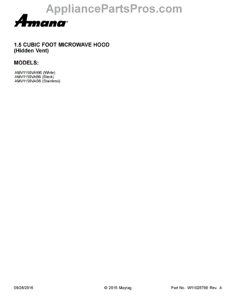 Parts for Maytag AMV1150VAB6: 01 - Cover Sheet Parts