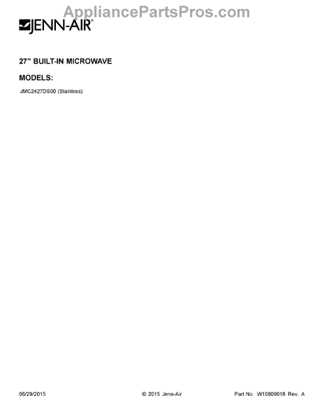 Parts for Maytag JMC2427DS00: 01 - Cover Sheet Parts