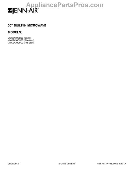 Parts for Maytag JMC2430DS00: 01 - Cover Sheet Parts