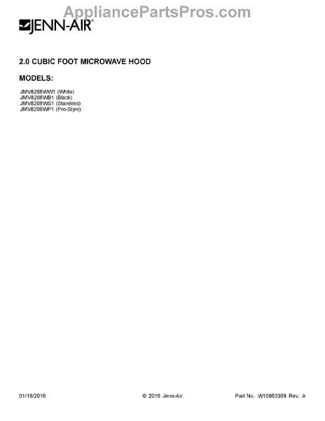 Parts for Maytag JMV8208WS1: 01 - Cover Sheet Parts