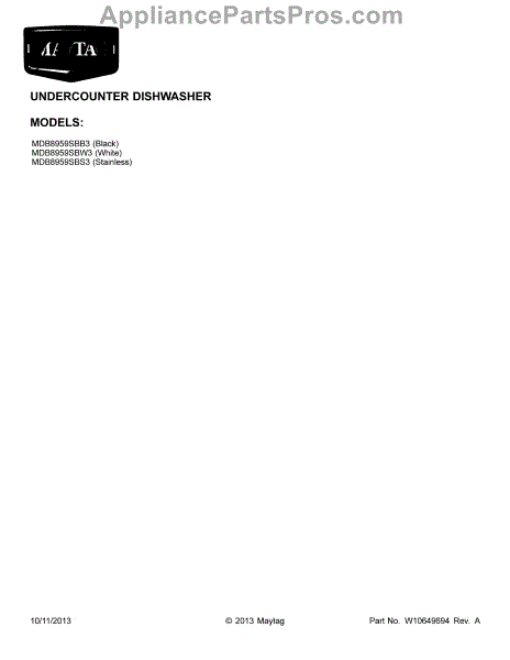 Parts for Maytag MDB8959SBB3: 01 - Cover Sheet Parts