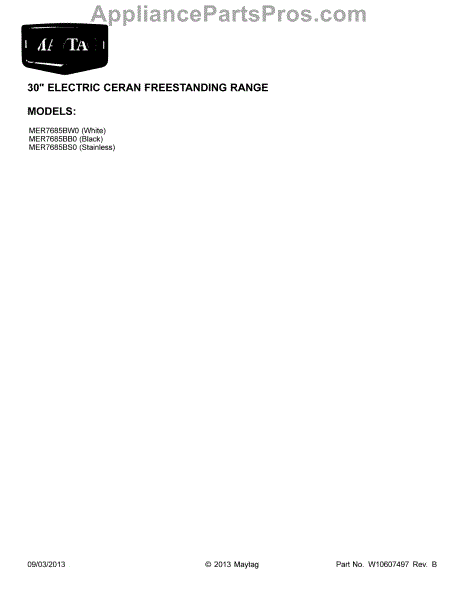 Parts for Maytag MER7685BB0: 01 - Cover Sheet Parts