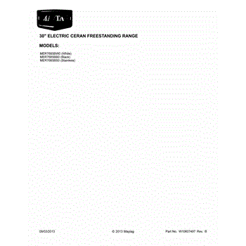 Parts for Maytag MER7685BW0: 01 - Cover Sheet Parts