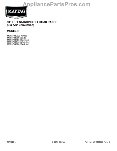 Parts for Maytag MER8700DS0: 01 - Cover Sheet Parts