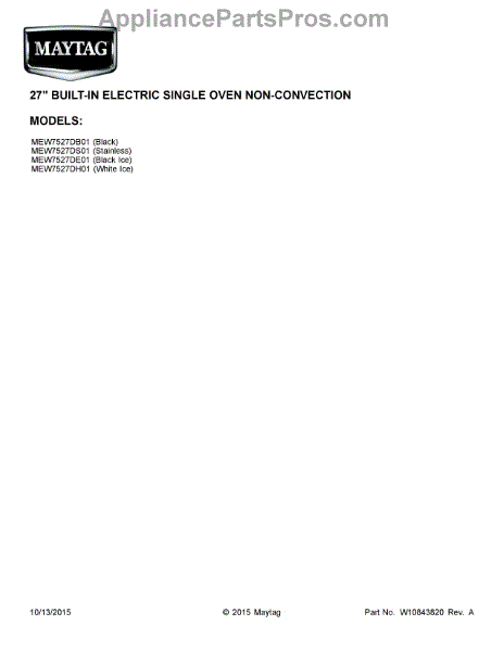 Parts for Maytag MEW7527DS01: 01 - Cover Sheet Parts